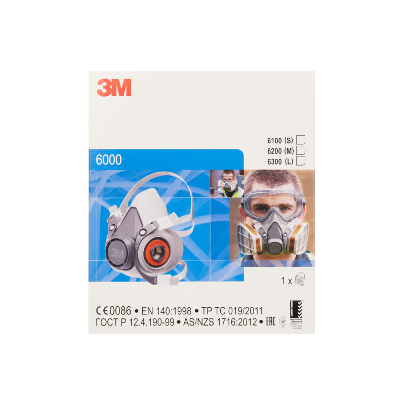 La media máscara reutilizable 3M™ 6200 está fabricada con un material elastomérico ligero y cómodo. Además cuenta con un diseño de doble filtro con conexión de tipo bayoneta arnés de cabeza con soporte y banda para el cuello fácil de ajustar. Esta media máscara reutilizable mediana es de perfil bajo y equilibrada.