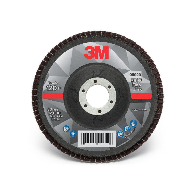 El disco de láminas 3M™ 769F es nuestro duradero disco de láminas abrasivo de alto rendimiento con resistente soporte de poliéster y tecnología de grano de precisión 3M™.