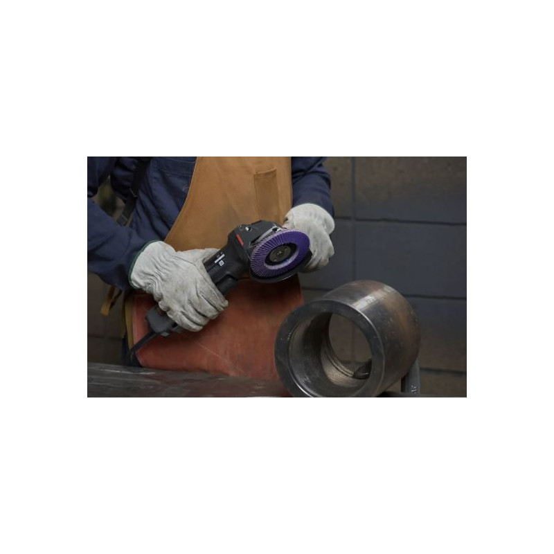 Abarca una amplia gama de aplicaciones, desde desbaste y biselado de soldaduras hasta preparación de superficies, desbarbado, matizado, acabado, eliminación de salpicaduras de soldadura y trabajo sobre bordes y contornos.