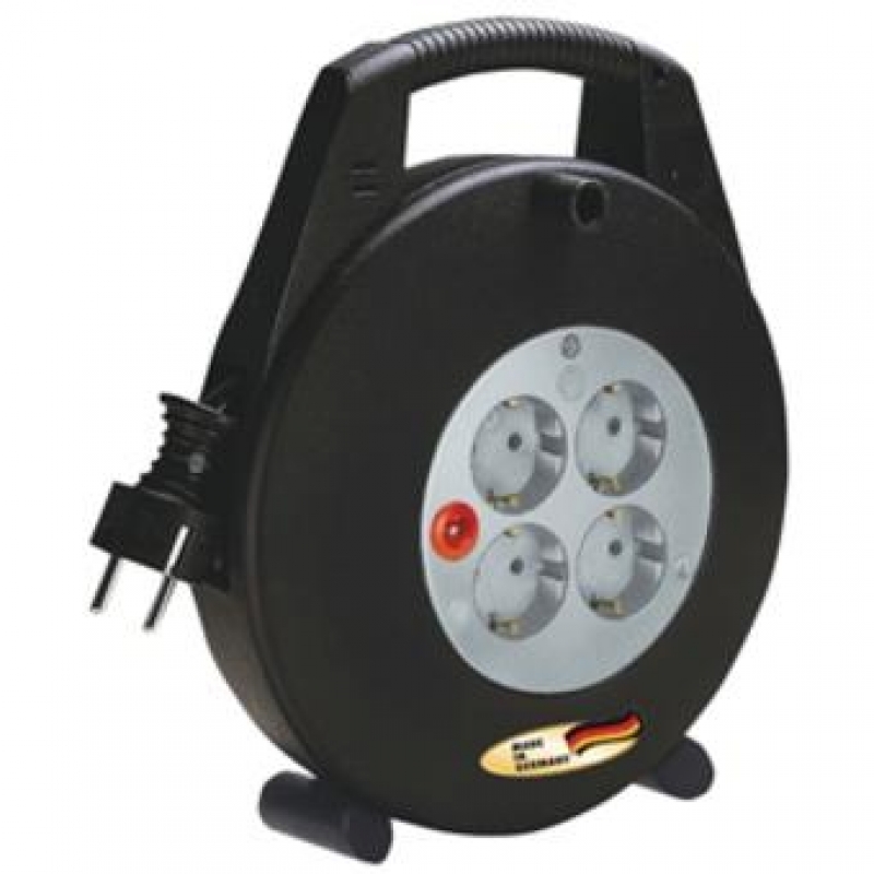 Extensible VARIO-LINE 10m H05VV-F3G1.5+DSS negro BRENNENSTH. Carcasa robusta y reforzada hecha de un plástico especial antichoque. Dotado de un fácil rebobinado y extensión. Gran estabilidad gracias a su doble pie. Clavija y tomas Schuko 16A/230V. Dimensiones: 22,5x27x8cm.