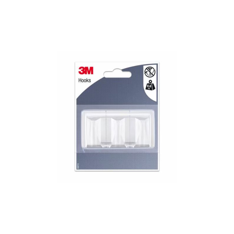 3M™ Gancho Adhesivo Rectangular. Blanco L (3 ganchos)