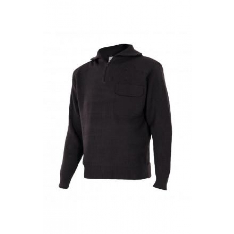 Jersey de punto de cuello alto con cremallera y tratamiento antipilling. Puños de canalé, bolsillo de parche en el pecho y refuerzo de tejido en hombros y codos.