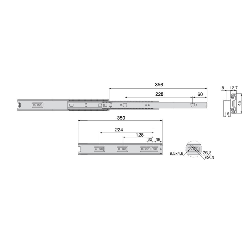 Guías de extracción total para cajones con un deslizamiento suave y silencioso gracias a sus rodamientos de bolas de alta calidad. Destacan además por su gran capacidad de carga que puede llegar a soportar hasta 30 kg por cajón.