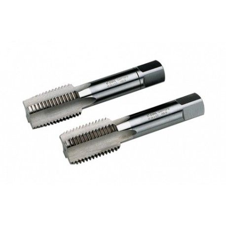 Juego de machos de roscar manuales para rosca UNF, de 2 piezas, HSS, tipo N, DIN 2184, tol. 2B, agujero pasante y agujero ciego. Suministro: juego de 2 piezas constituido por primer macho y macho finalizador. Nota: para rosca UNF, rosca fina unificada según ANSI B1.1.
