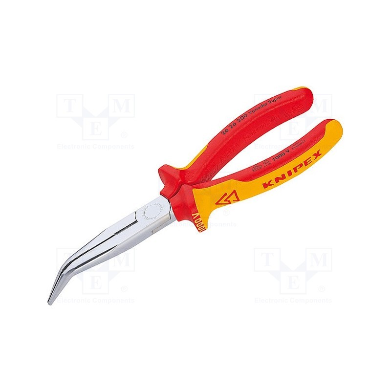Puntas elásticas: estabilidad en caso de torsión. Puntas de precisión elásticas con tolerancia de torsión. Boca larga semi-redonda que termina en punta. Con filos para alambre blando semiduro y duro. Filos de corte templados adicionalmente por inducción. Dureza aprox. de los filos 61 HRC. Mordaza en ángulo de 40º.