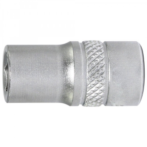 Llave de vaso hexagonal de 1/2", DIN 3124, ISO 2725-1, arrastre interno cuadrado DIN 3120, C 12.5, ISO 1174. Ranura para bola de retención, interior hexagonal con esquinas redondeadas discosas para proteger la cabeza del tornillo. Agarra también tuercas y tornillos redondeados, antideslizante, acabado satinado, acero de calidad C60. Longitud de 40mm.