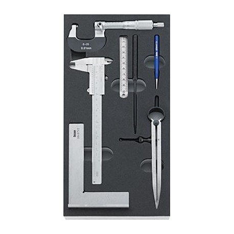 Módulo de herramientas Técnica de metrología/Servicio, Interior bicolor de gomaespuma, reconocer la herramienta que falta de un solo vistazo, Apto para los carros de herramientas , No. pedido 42 40901 020-030 y para el carro de taller con ruedas , No. pedido 42 40901 040, Dimensiones L x B x H: 1/3 = 177 x 365 x 30 mm 2/3 = 354 x 365 x 30 mm 3/3 = 531 x 365 x 30 mm. Tamaño 02. Mrz .