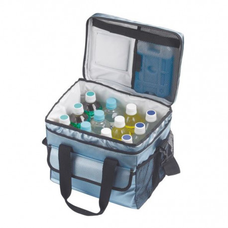 Nevera flexible 15l 31x24x24cm FlexBox. Tejido exterior reflectante. Bolsillo frontal, malla lateral y ventana abrefácil en medidas grandes.