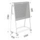 Panel perforado con ruedas 1500x1000x800mm, se sirve desmontado. Montaje con tornillos. Ruedas de goma Ø100mm.