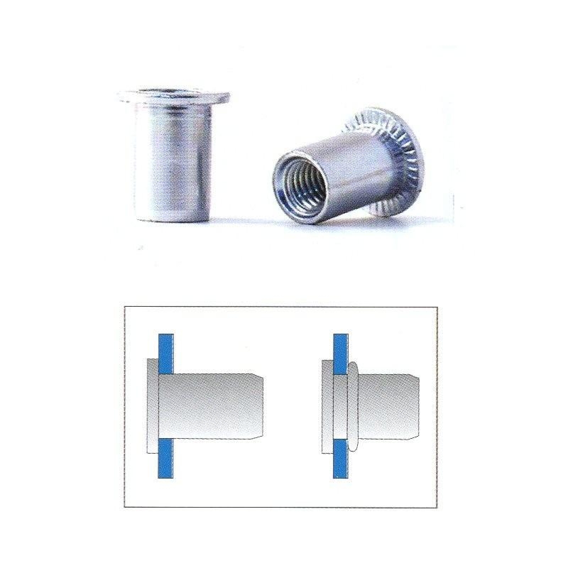 Tuerca Remachable Acero Cabeza Baja Ranurada Fondo Abierto M-8 Espesor de 0,50 a 3,00 mm. - 11,00 x 16,80