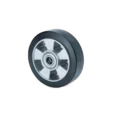 Aro de foma elástica, con núcleo de aluminio, banda de goma elástica, cojinetes de bolas y rango de temperatura -20º a +70º C. Diámetro: 200 mm. Capacidad de carga: 450 kg. Ancho de Banda de rodadura: 50 mm. Diametro agujero del buje: 20 mm. Ancho del buje: 60 mm. Tipo de cojinete: Cojinete de bolas. Color: Negro.