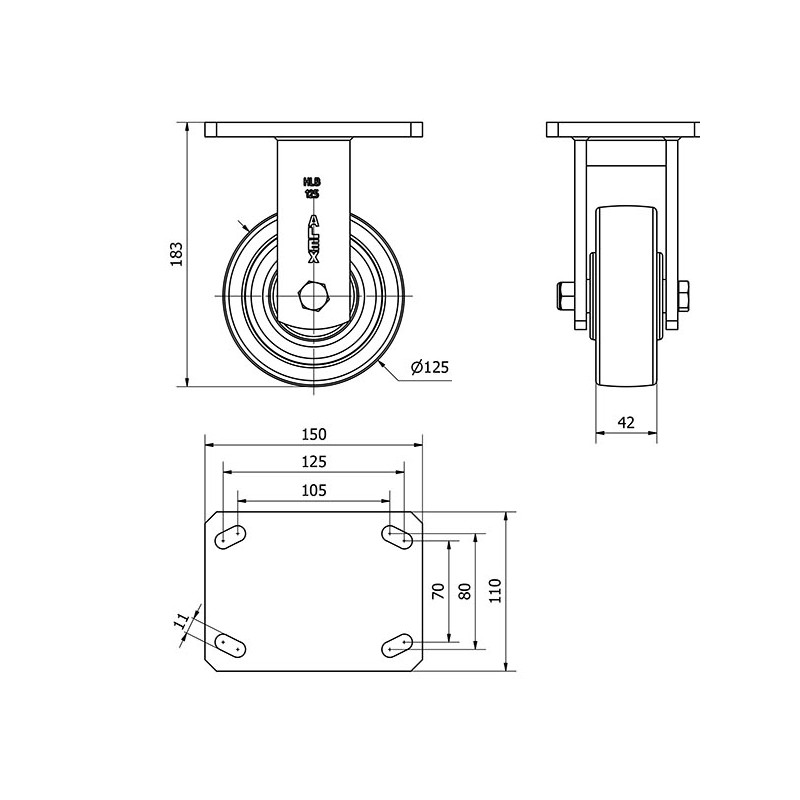 Rueda fija extrafuerte nylon HLB-FT 600kg 125ø bolas ALEX