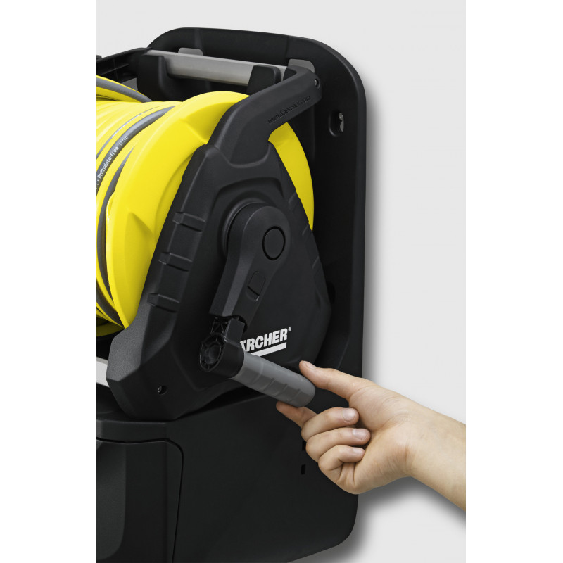 La estación de riego compacta El portamangueras Premium HR 7.300 ya montado para uso móvil o estacionario es ideal para el riego de superficies y jardines de tamaño pequeño y mediano. Gracias a sus numerosas opciones de almacenamiento, por fin se puede guardar todo en un sitio. Detalles de equipamiento: enrollador de mangueras extraíble (2 en 1), posibilidad de almacenaje para boquillas y aspersores, espaciosa caja de almacenamiento para guantes de jardín, tijeras de podar, palas, etc. Incluye soporte de pared y 2 conectores de manguera y la posibilidad de sujeción adicional de lanzas de riego. Adecuado para todas las mangueras de riego habituales (capacidad: manguera 1/2" de 30 m, manguera 5/8" de 20 m o manguera 3/4" de 12 m). Porque regar con Kärcher es regar con inteligencia.
