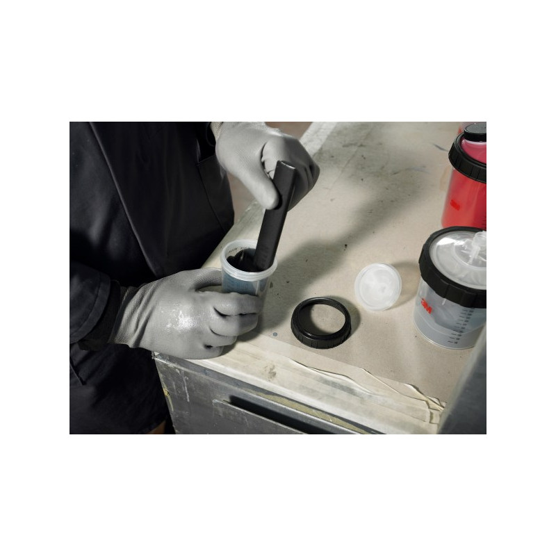 Cada kit de tapas y vasos desechables 3M™ PPS™ (primera versión no compatible con los productos de la serie 3M™ PPS™ 2.0) contiene 50 (o 75) tapas desechables con filtros soldados que filtran la pintura durante el pulverizado 50 vasos desechables y 24 tapones de sellado