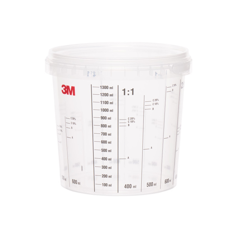 Los vasos mezcladores 3M™ están disponibles para mezclar y almacenar pintura imprimaciones y barnices.